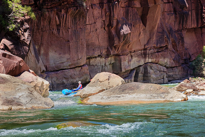 Greg and Christy flirt with the Birth Canal at Triplet Falls. Photo © copyright by Tom Kennon.